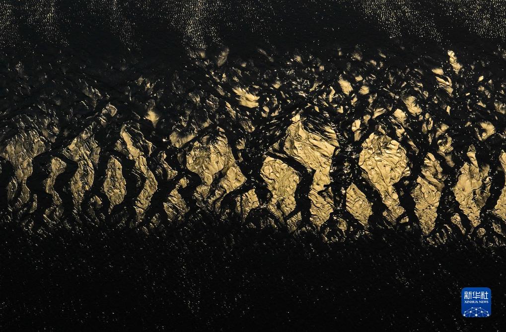 盐城东台条子泥湿地滩涂景色(2023年9月1日摄,无人机照片)。新华社记者 季春鹏 摄