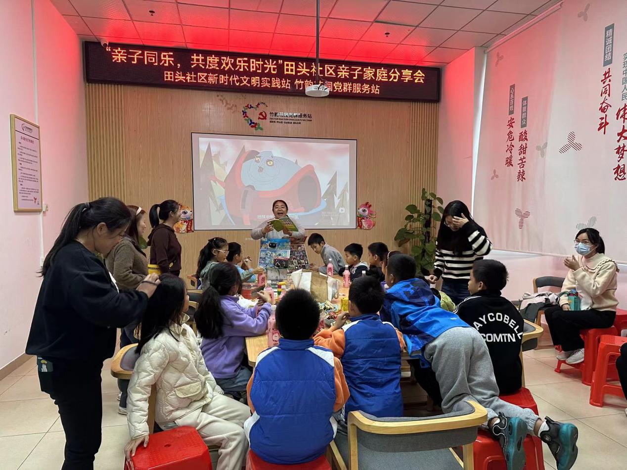 本次活动共吸引社区亲子30人参加。尽管气温骤降,但参与人员热情洋溢,活动现场热闹非凡。亲子们自发带来了美食和激励品,孩子们在家长的陪伴下,一边品尝美食,一边交流学习心得。工作人员通过古诗接龙、科学科普电影观影及有趣的共读游戏,引导孩子在家长和朋辈的陪伴下,在玩耍中学习新知识,在快乐中成长。这种寓教于乐的方式深受孩子们的喜爱及家长们的认可。