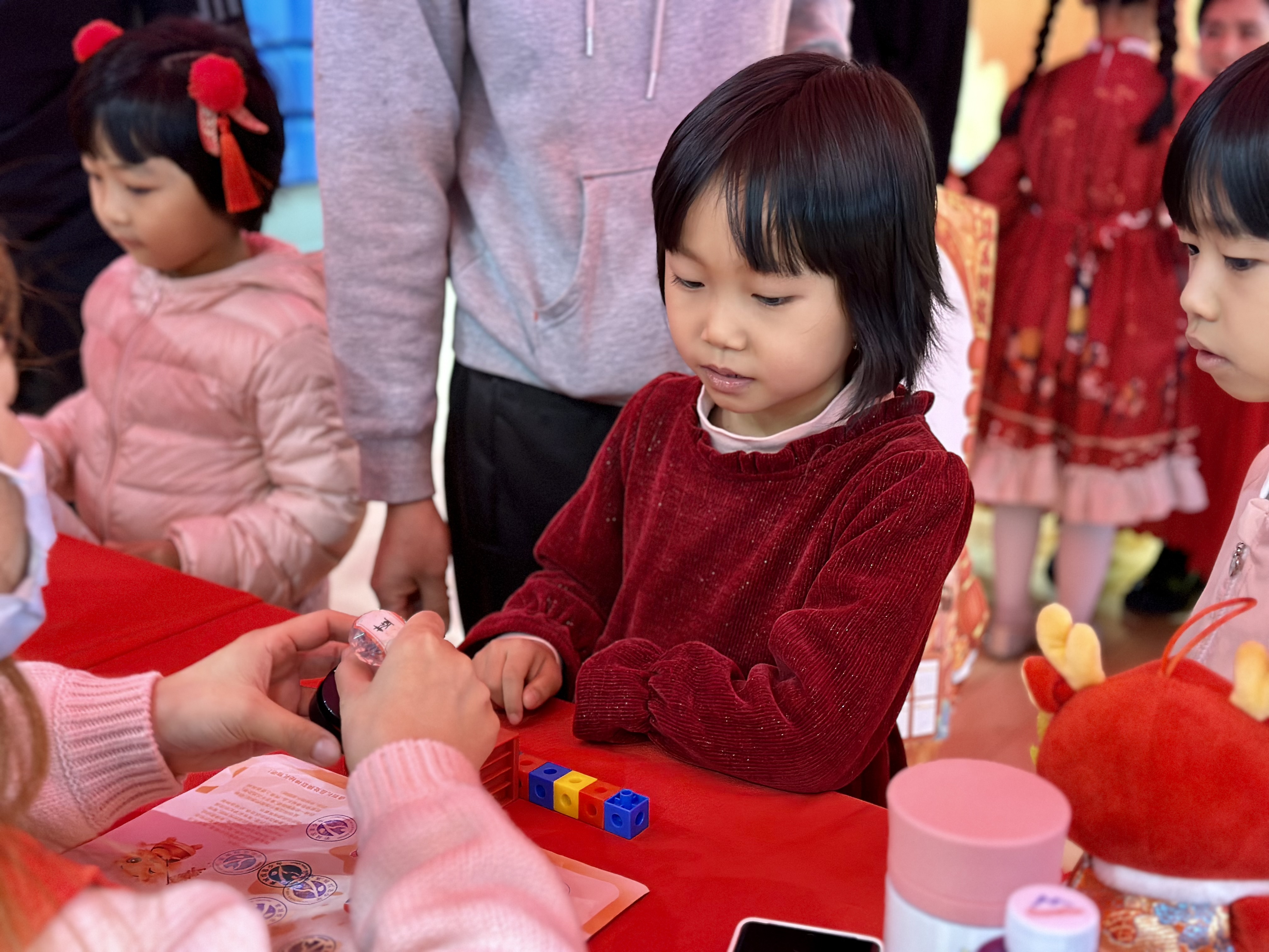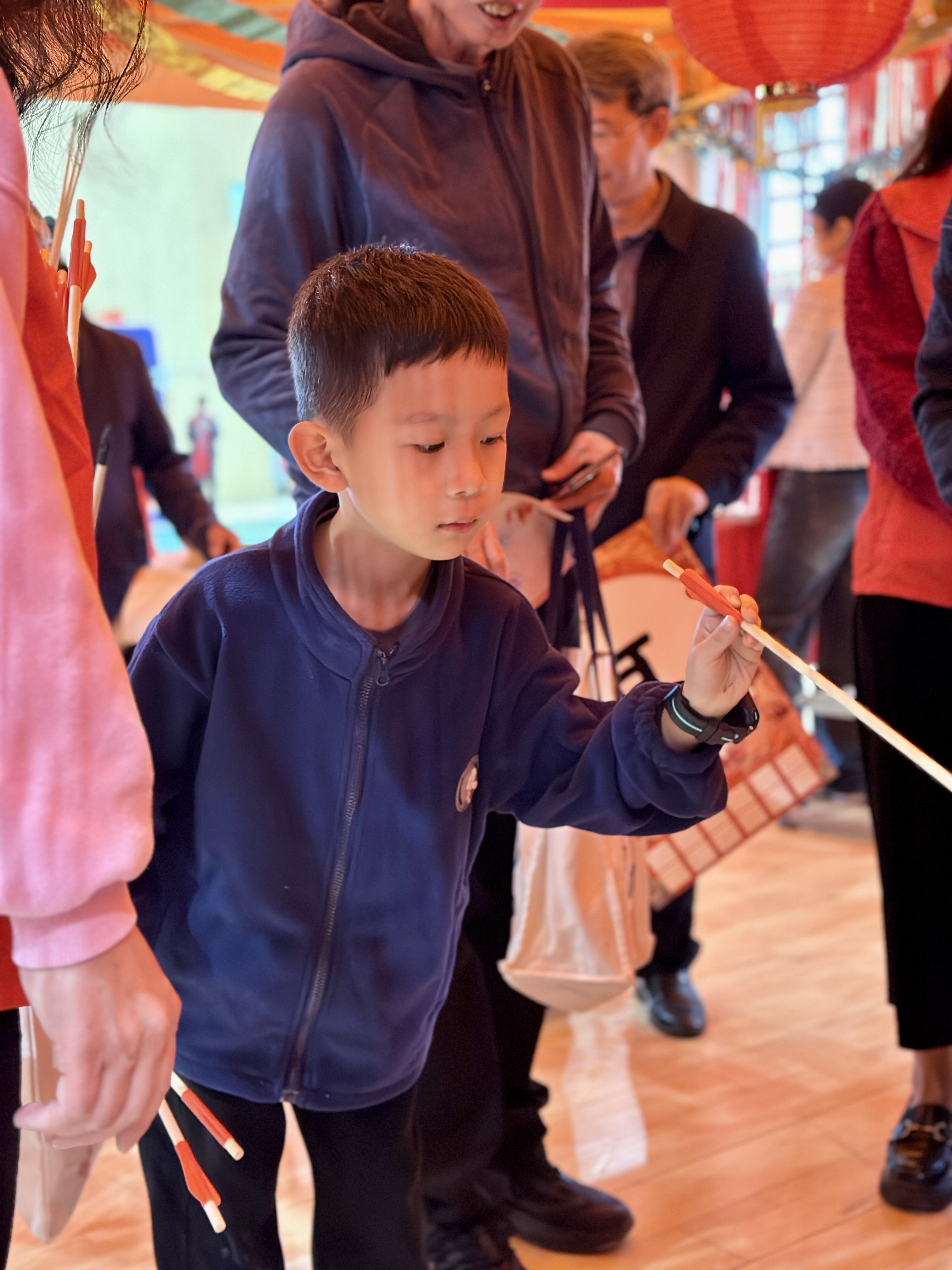 游园活动的游戏项目设置精妙,一二年级的同学们个个神采奕奕,或和家长一起走在新春游园会游戏项目中,或手持“集结卡”到各个场馆独自挑战,赢得荣誉勋章,现场气氛浓烈。有学生认为,在体育项目中,要抓住“狗骨头”,速度一定要快。也有学生表示,投壶游戏十分有趣,需要凝神静思,才能更好地投进壶中。还有同学认为,能从幸运红包中收获来自同伴的新春祝福,每个祝福都创意满满,感觉无比开心。同学们在游戏中获取知识,积累经验,培养游戏力、学习力和思考力。