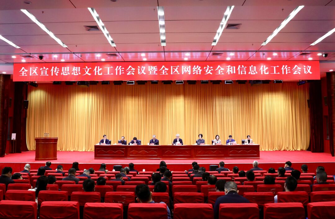 2023年,全区宣传思想文化战线以习近平新时代中国特色社会主义思想为指导,围绕中心、服务大局,开展了大量强基础、利长远的工作,推动宣传思想文化工作和网信事业取得一系列新进展新成效。当前和今后一个时期,要全面系统深入学习领会习近平文化思想和习近平总书记关于网络强国的重要思想,坚定拥护“两个确立”、坚决做到“两个维护”,自觉把思想和行动统一到习近平总书记、党中央的决策部署上来,做到学懂弄通、学深悟透、入脑入心、见行见效,坚定不移沿着习近平总书记指引的方向做好各项工作。