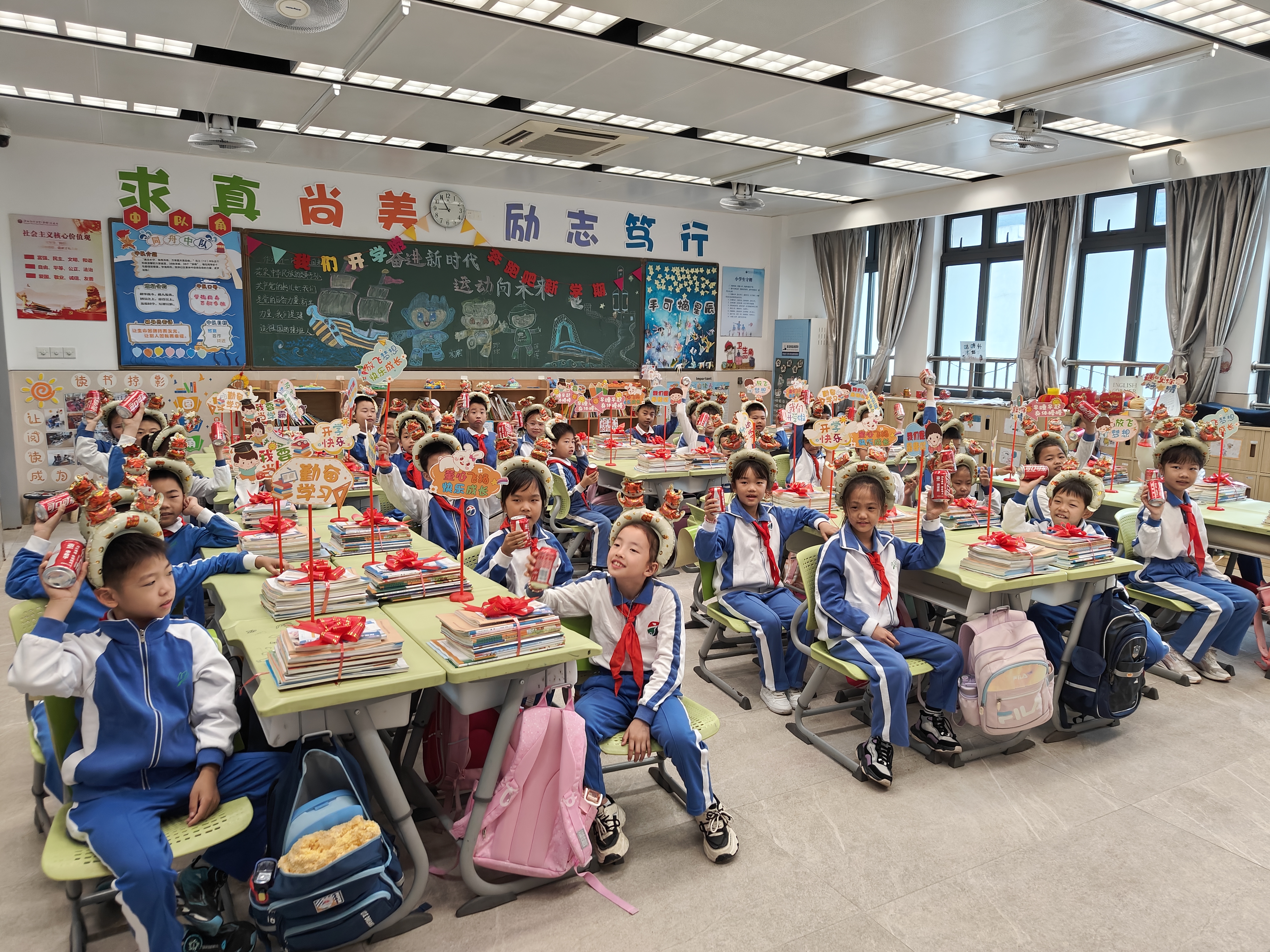 “龙翔万里,乘风而上”“龙腾四海,蓄势待发”……坪山中心小学的老师和同学手持欢迎展板,热情迎接回归校园的学生。当日早上8点,坪山中心小学开学典礼准时开始,同学们踏着整齐的步伐,个个精神抖擞,学校老师还为同学们精心准备了新学期“红包”,里面装着老师对学生新学期的鼓励。