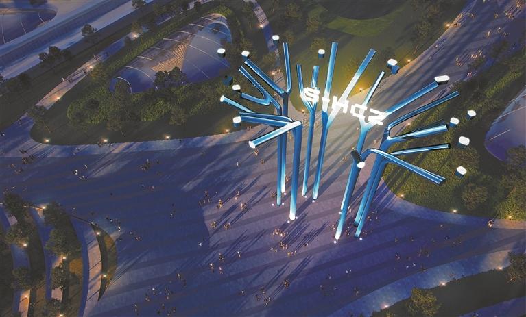 河套深港科技创新合作区的地标标识物出自许礼贤设计团队。他介绍,地标形象设计取自合作区建筑规划形态意象特征,巧妙地构成电子芯片和科技元素,彰显河套深港科技创新合作区城市规划肌理和合作区的核心定位。地标形象释放能量,散发出两边的能量光柱展现河套深港科技创新合作区“一河两岸、一区两园”跨境直连互通的独特优势。地标形象取自建筑形态意象的能量光柱向外发射,表达社会主义先行示范区敢为天下先、开拓进取、创新发展,深港合作多元文化融合;发散的光芒是科技之光,彰显合作区科技创新为主题的核心理念。地标形象两边的能量光柱以“河套”为核心聚拢融合,表达深港两地在河套深港科技创新合作区中跨境联通、交融发展、协力并进的发展前景。而地标形象两边发射状箭头的符号,彰显“双区驱动”的国家战略使命;同时表达河套深港科技创新合作区在大湾区发展规划纲要和先行示范区中,成为“双区”建设的重大平台。