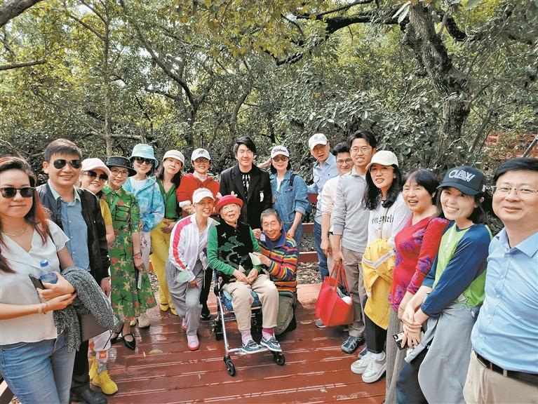 今年3月5日,“依丽一家亲”群体种植家庭树活动。周炜的母亲(图片中坐轮椅者)现年93岁,老人家自2006年参加种树后再次看望银叶树群落。