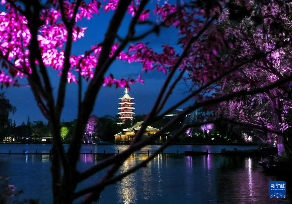 4月10日在嘉兴市南湖拍摄的壕股塔。新华社记者 兰红光 摄