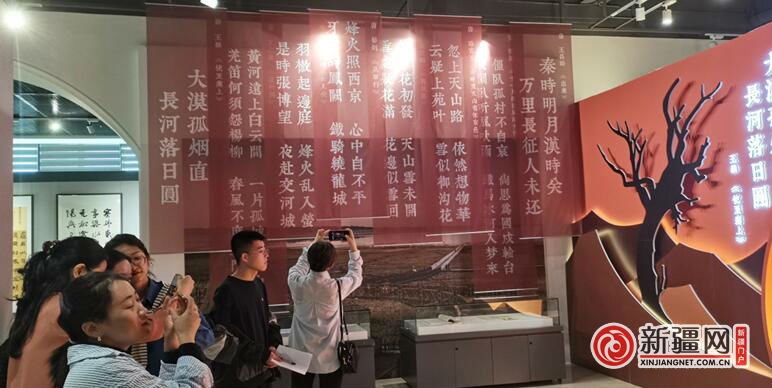 “诗书诵西域 翰墨润天山——历代西域诗抄”展览集纳了众多描述新疆与内地千年人文交流的诗句,该展集纳新疆图书馆馆藏《中华再造善本》《四库全书》等文献资源,精选自先秦至清末100位诗人的250首西域边塞诗词,由书法家书写装裱,与部分古籍原本和仿本共同展出,使古代先贤诗词歌赋中的精华焕发出具有当代价值的文化精神。如周穆王驾八骏西出昆仑、汉武帝刘彻为迎“汗血宝马”所作的天马诗,背后都有着一个个动人的故事,令现场观众痴迷。