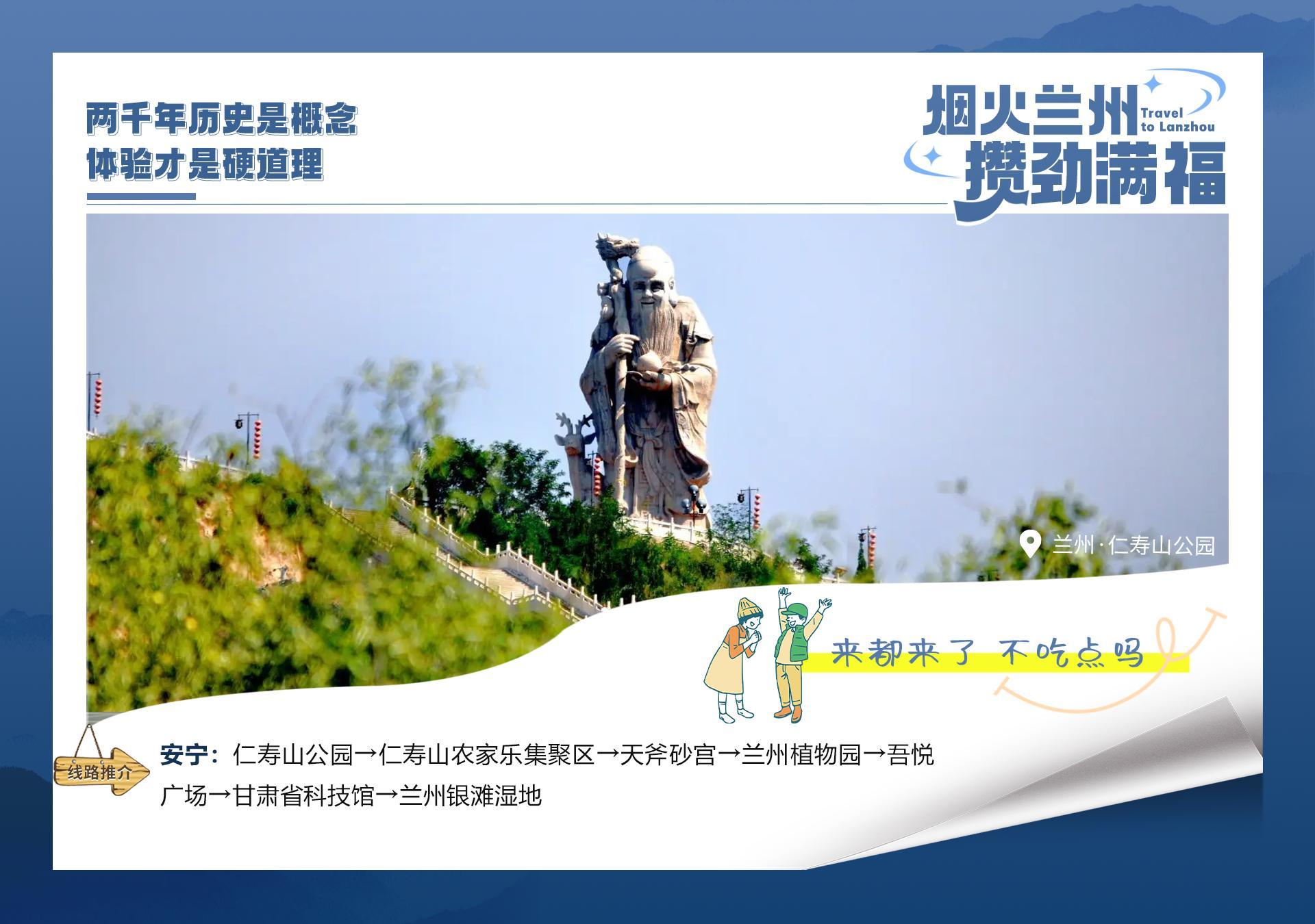 4.安宁:仁寿山公园→仁寿山农家乐集聚区→天斧沙宫→兰州植物园→吾悦广场→甘肃省科技馆→兰州银滩湿地