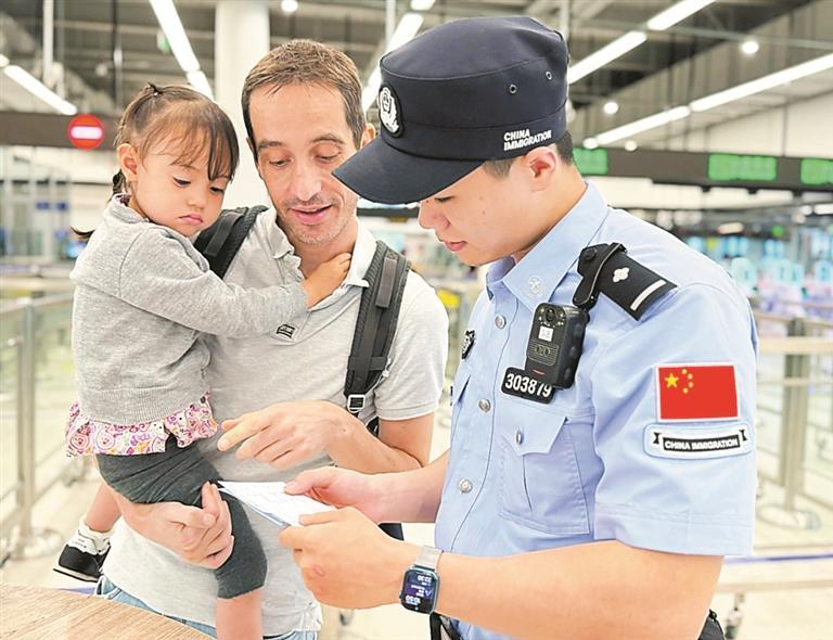 边检民警为旅客答疑解惑。 (受访单位供图)