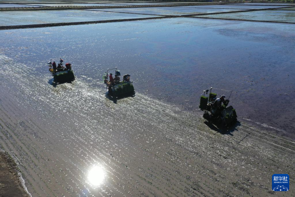 近日,我国重要的粮食主产区黑龙江省三江平原地区水田插秧作业全面启动。在位于三江平原地区的黑龙江北大荒农业股份有限公司友谊分公司,57万亩水田地块的水稻插秧作业正全力推进。当地集中人力与机械设备,抢抓气温上升的有利时机,加快作业进度,确保水稻秧苗全部插在高产期,预计5月23日前完成全部水田的水稻插秧作业。
