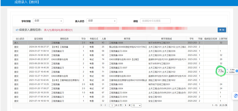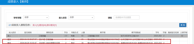 4月28日,教师系统显示,《GNSS原理与应用》的补考成绩在系统中(受访者供图)
