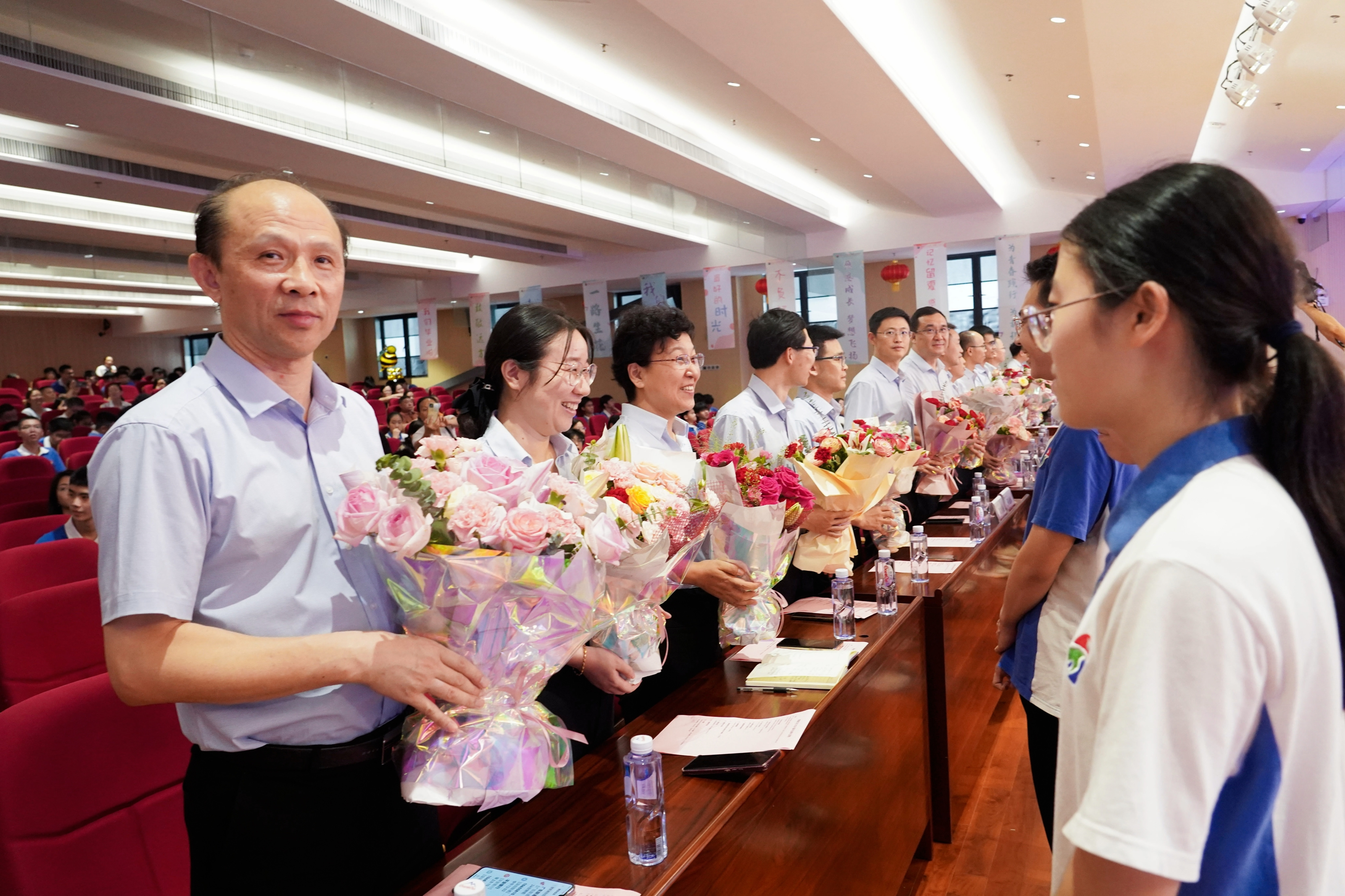 “亲爱的老师,与您相遇在美丽的紫堡,是我们最大的幸运。”活动现场,学生代表向全体初三教师及职工代表献花,表达学生们对老师们无限的敬意和感激。