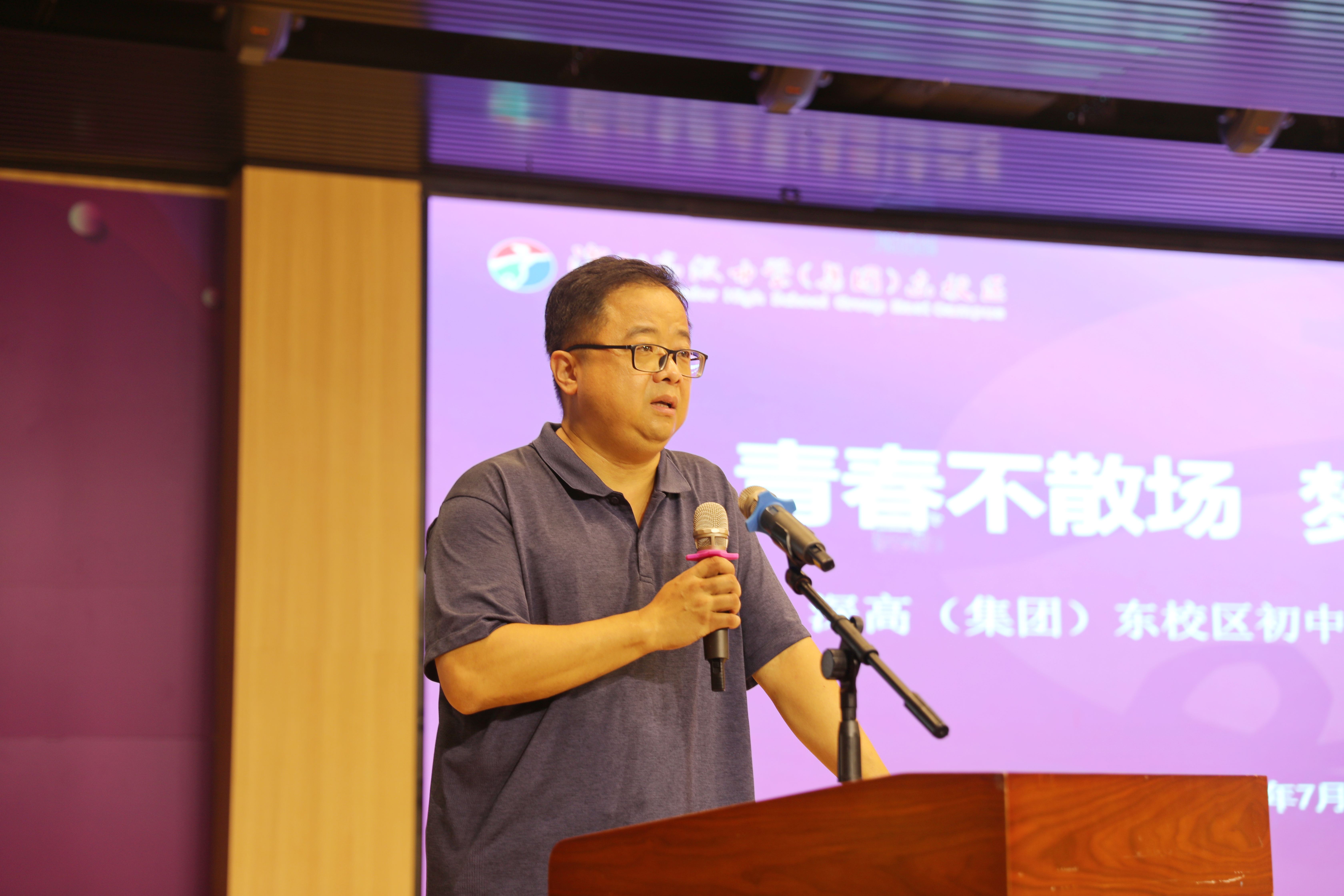 深圳高级中学(集团)东校区初三年级长、教师代表卫春潮回忆了与学生们共同度过的三年时光,强调了保持学习初心、阅读习惯、锻炼习惯的重要性。卫春潮的话语中充满了对学生的期望,希望他们能够将“团结协作、敢于成功”的深高精神融入到未来的每一步旅程中,成为社会的有用之才。