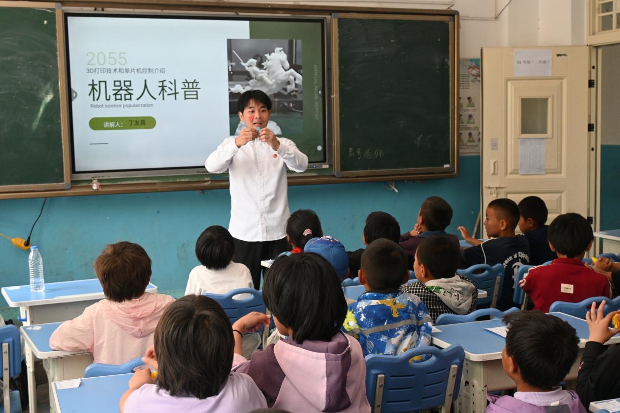 在这次机器人科普活动中,深圳技术大学学生为当地中小学生开展了一场3D打印的科普讲座,并展示了各种3D打印模型,同学们聚精会神地聆听,眼里充满了对新知识的渴望与好奇。