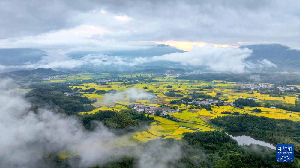 安徽省宣城市旌德县兴隆镇梯田,有着万亩“云上梯田”之称。立秋过后,连片种植的万亩水稻陆续成熟,丰收在望。