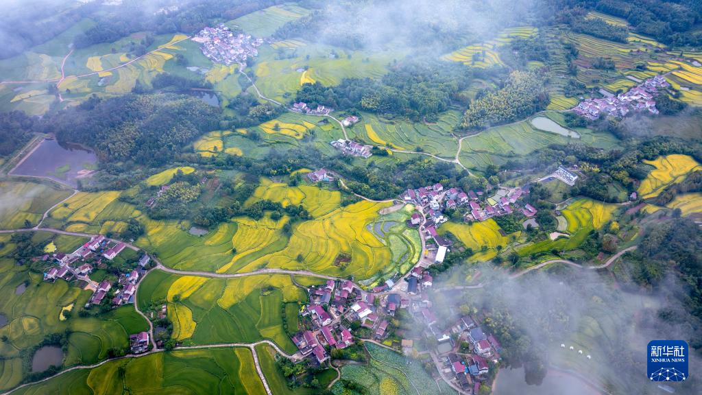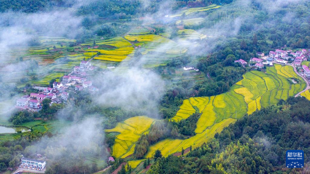 安徽省宣城市旌德县兴隆镇梯田,有着万亩“云上梯田”之称。立秋过后,连片种植的万亩水稻陆续成熟,丰收在望。