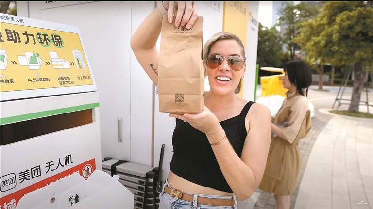 除了在各种建筑和自然景观间流连,高科技设施体验也成为外国游客在深圳旅游的重要内容。在深圳人才公园,英国博主亲身体验了无人机送外卖的服务。当无人机带着商品穿越摩天大楼,在半小时内从天而降将商品送达她手中时,这些“空中快递员”让她惊叹:“这才是真正的未来生活!”