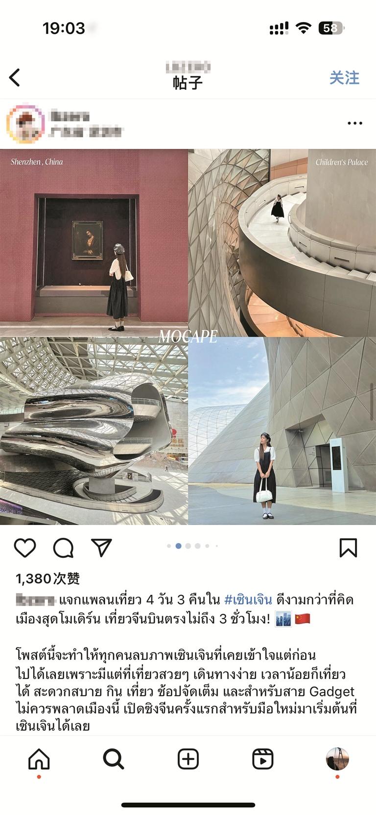 不少来深圳旅游“尝鲜”的外国博主在旅行结束后,将他们在深圳的行程和体验整理成详细的旅游攻略,发布在海外社交平台上。这些攻略不仅详细介绍了深圳的热门景点,还分享了他们的独特体验,收获了大量外国网友的关注。其中,一位来自泰国的博主在自己的社交账号上发布了一条“4天3夜深圳游攻略”,收获了大量点赞与评论。