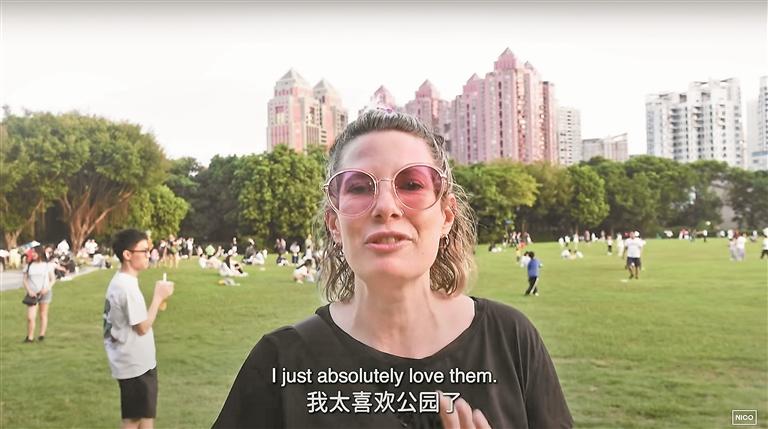 ▲外国游客在深圳逛公园。