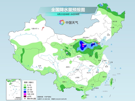 后天,黑龙江北部、内蒙古河套地区、陕西北部、山西中部、河北中南部、山东北部、甘肃西南部等地部分地区有大到暴雨,其中,陕西北部等地局地有大暴雨。