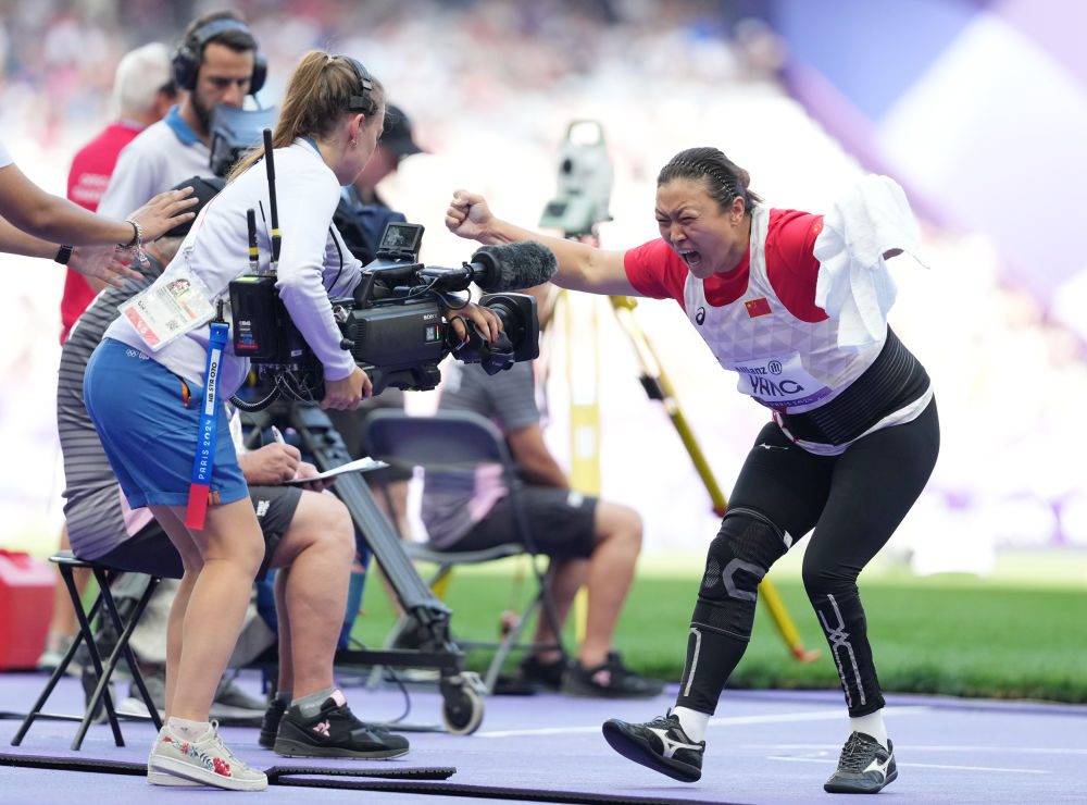 ↑9月5日,法国选手努谢在田径女子铅球F64级决赛中。新华社记者 才扬 摄