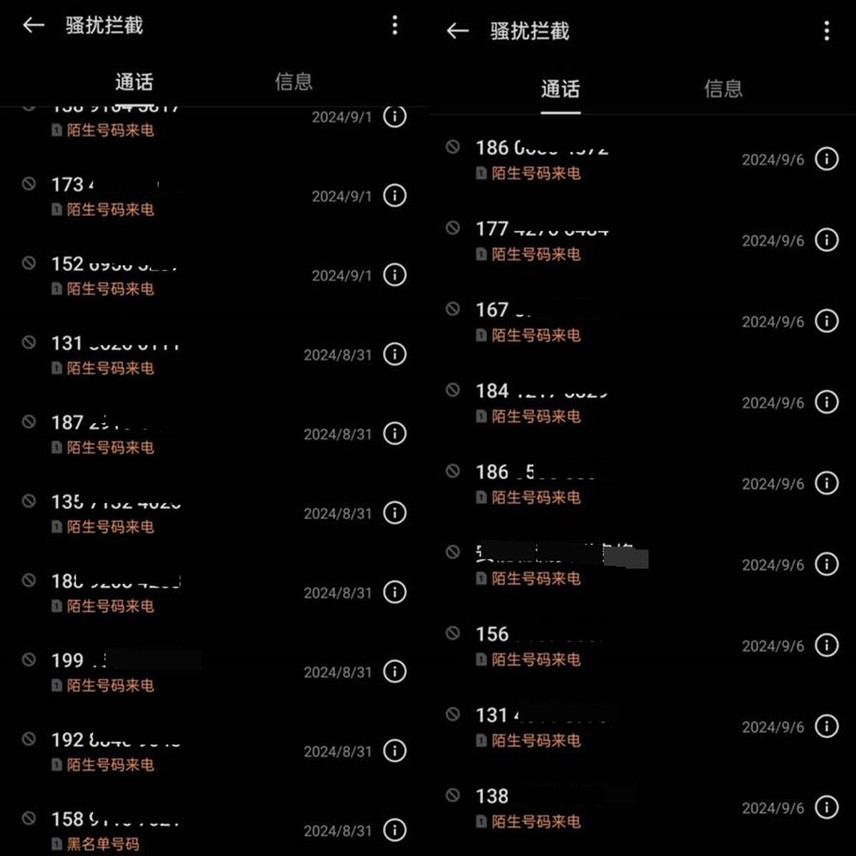 9日上午,王先生向极目新闻记者提供的截图显示,他每天接到多个陌生来电,无奈之下已将部分来电号码加入黑名单。他提供一段电话录音显示,对方辱骂王先生,质问他为何要在礼泉县拍烂苹果的视频,并扬言“把你的腿打断”。