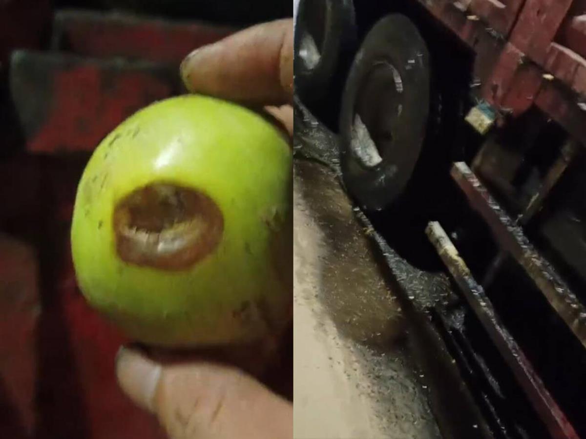 网友发现货车上有烂果(视频截图)