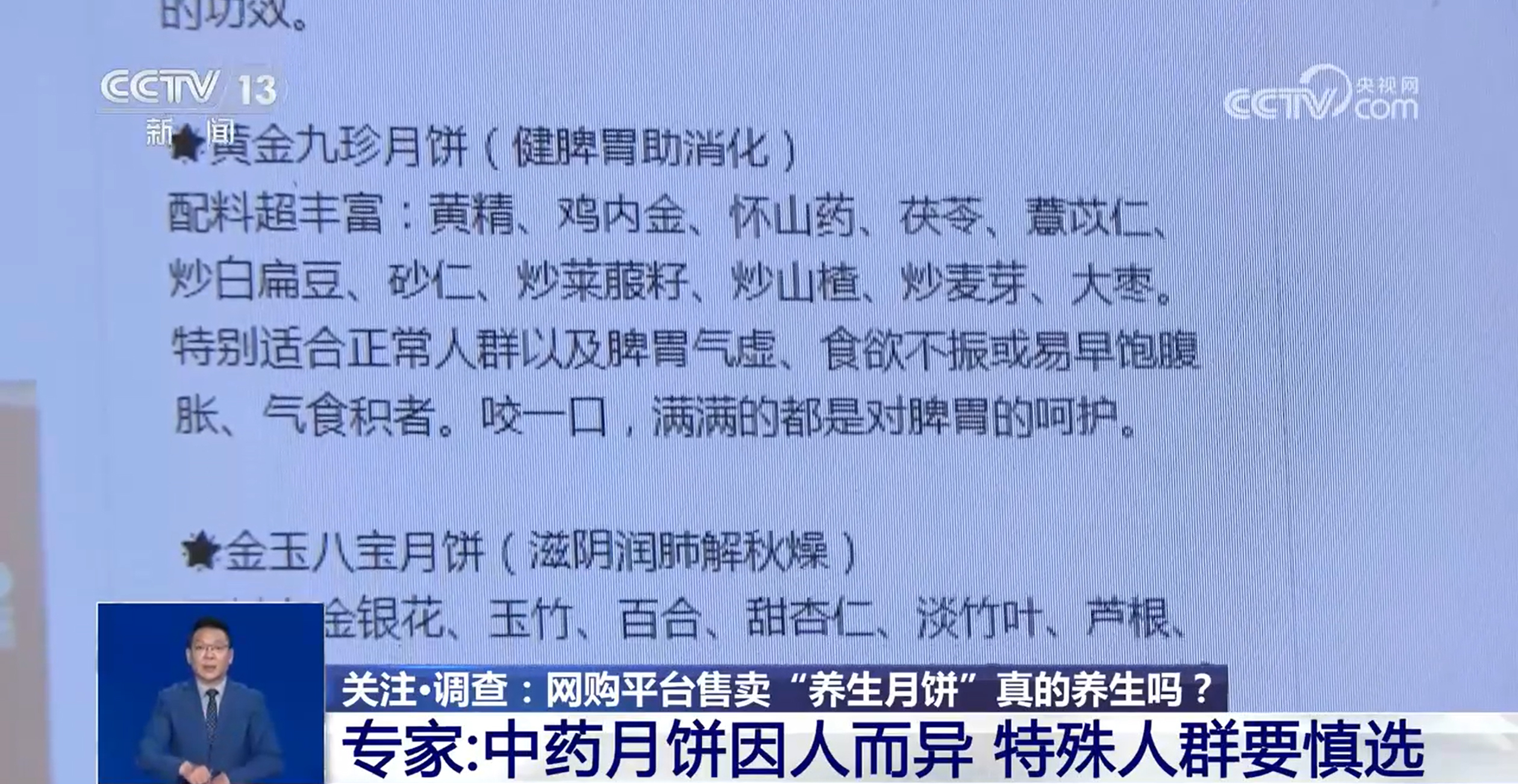 商家口中的"养生月饼"号称是添加了中药材,名称也是五花八门,但这些所谓“养生月饼”真的有宣传的那般神奇功效吗?一起来听专家怎么说?