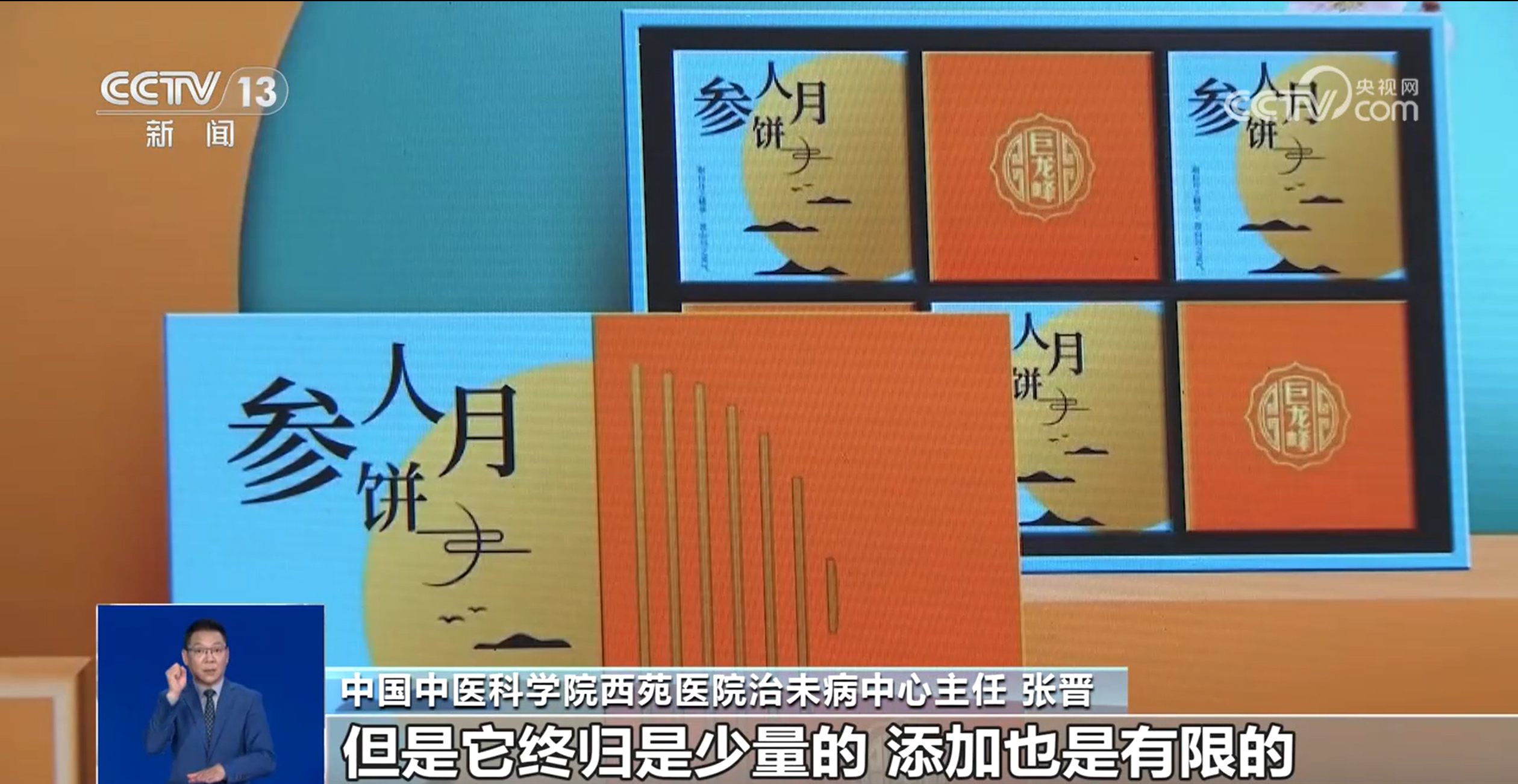 中国中医科学院西苑医院治未病中心主任 张晋:我们中医讲叫是药三分毒,凡是比如说天麻、人参,还有像红花、三七这一些,它本身就是有比如说补气活血,还有补益肝肾的作用。我们的月饼它是一个普通的食品,如果我在家自己制作月饼,我们根据自己的体质去选择,我想放三七,然后放一点人参,或者放一点虫草或者放点天麻,我们因人而异是可以的,但是把这些药材放到我们普通食品的月饼里面进行销售,这个大家就要谨慎选择了。