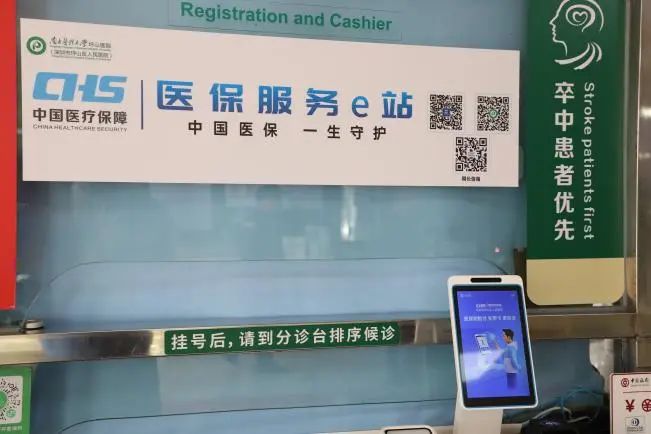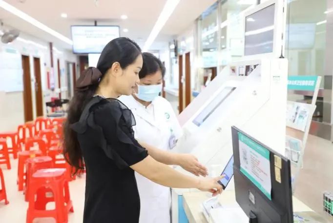 居民来社康中心就诊后,从挂号、取号开始,通过社康中心导诊台或收费处的医保智慧终端,就可以刷脸完成医保身份认证,完成挂号、取号、缴费等操作。