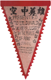 坪山人民赠送给美军飞行员克尔中尉的“空中英雄”锦旗