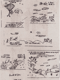 1945年,东江纵队司令部收到美军飞行员克尔从太平洋彼岸寄来的美国出版的杂志,里面刊登有克尔自画的漫画,记载着东江纵队英勇机智粉碎敌人围剿,抢救美国飞行员的惊险故事。
