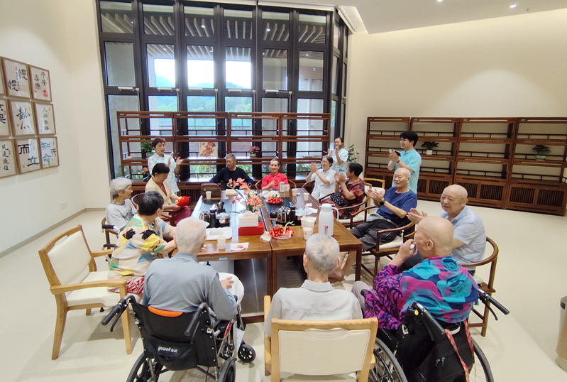 考虑到长者的个性化娱乐需求,坪山康养中心设立了三层活动中心,分别有健身房、舞蹈室、瑜伽室、茶艺室、棋牌室、亲子游戏室、户外花园、户外健身区等场所,并定期举办茶话会、生日会等各类活动,进一步丰富入住长者的居住体验。