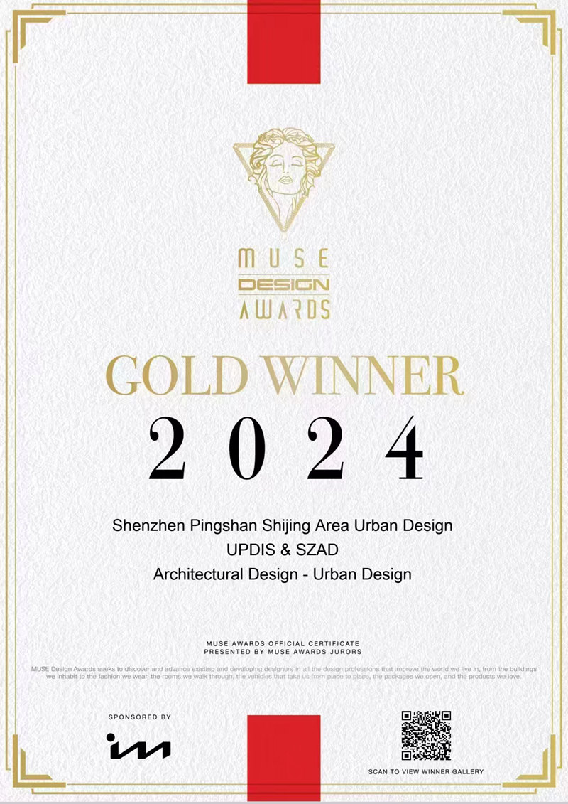美国MUSE设计奖由美国国际设计奖项协会(IAA)主办,是世界创意设计领域的最高奖项之一,号称“设计界的奥斯卡”。这次喜获金奖是国际规划建筑设计领域专家对石井片区规划设计中充分融合自然生态与人文景观可持续高质量发展理念的高度肯定。