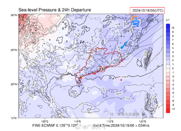 预计,16-18日,广东省大部多云间阴天,西部的部分市县多阵雨;全省大部早晚有(轻)雾,能见度下降。具体预报如下:
