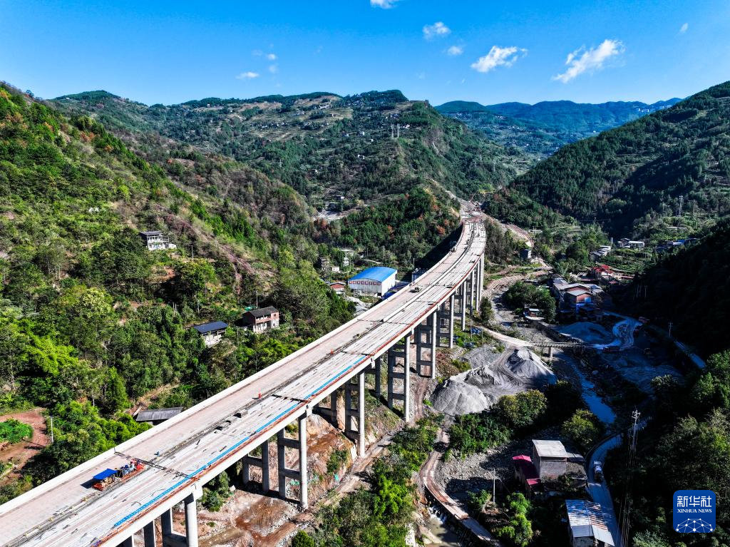 这是10月18日拍摄的建设中的万开达高速公路漆树梁大桥(无人机照片)。新华社记者 王全超 摄