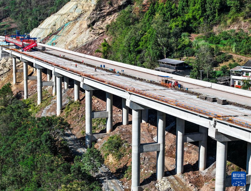 这是10月18日拍摄的万开达高速公路漆树梁大桥项目作业现场(无人机照片)。