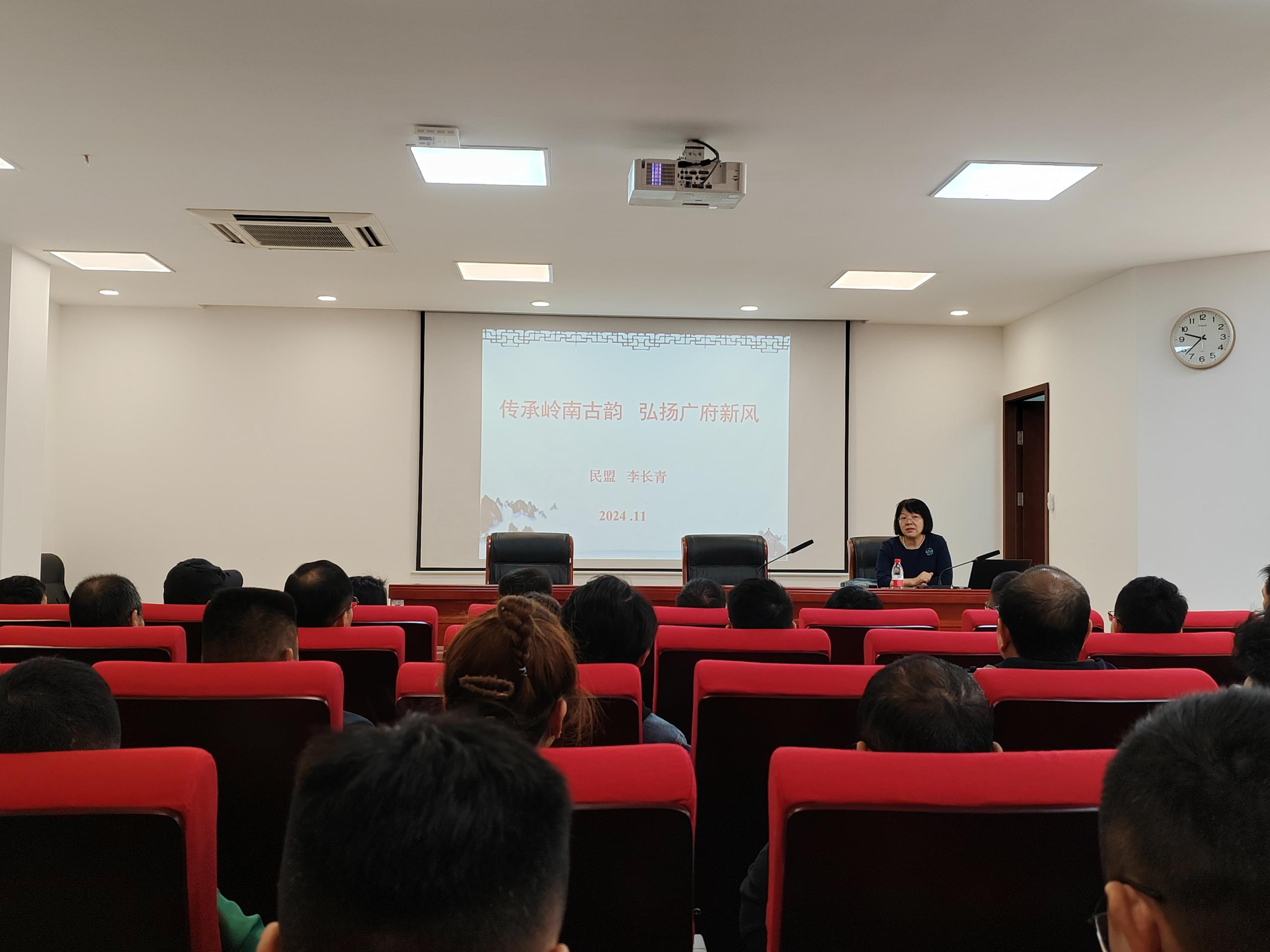 本次活动邀请了民盟坪山区总支委员、坪山区政协委员、坪山区高级中学高级教师、家庭教育指导师李长青授课。李长青围绕“传承岭南古韵,弘扬广府新风”的主题,以谯国夫人、张九龄等岭南代表的生动案例,从“渐慕华风”到“颇同华夏”再到“向海而生”深入浅出地讲解了岭南文化的历史沿革、发展传承、交互融合以及内核特征,引导大家传承岭南文化务实、进取精神,做有担当的奋发有为之人。