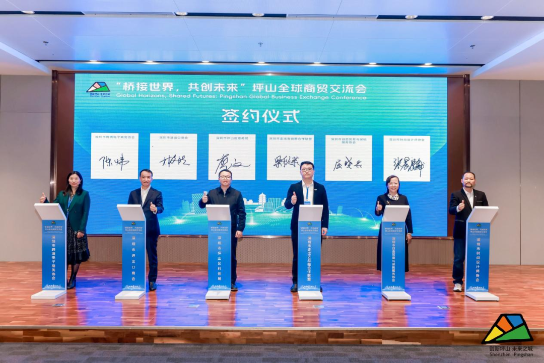 坪山区与深圳市走出去战略合作联盟、深圳市跨境电子商务协会、深圳市进出口商会、深圳市自由贸易与保税服务协会、深圳市时尚设计师协会5家商协会签订了战略合作协议。各方将通过整合全球外经外贸资源、加强信息共享,进一步推动坪山区企业国际化发展,提升整体竞争力。