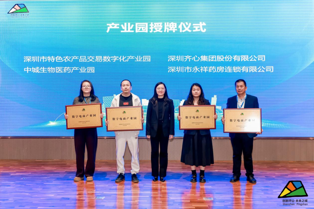此外,坪山区还向宝山产业园、坪山创新广场、多彩硅谷、深圳一云创谷数字产业园、深宇科技园5个产业园授予“跨境电商产业园”牌匾,为深圳市特色农产品交易数字化产业园、深圳齐心集团股份有限公司、中城生物医药产业园、深圳市永祥药房连锁有限公司4个产业园授予“数字电商产业园”牌匾,标志着坪山区在数字商贸领域的布局迈上新台阶。