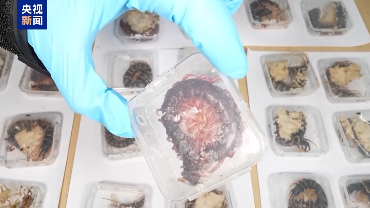 海关查获36只活体德哈尼蜈蚣