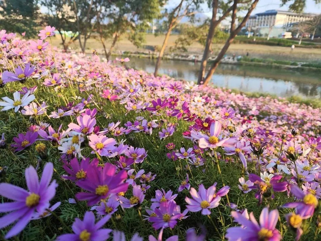 此外,研学团还前往坪山河体验采风。春日的深圳坪山,处处温柔。沿着赏花步道漫步在坪山河畔,遇见这一大片格桑花,吸引众人上前拍照打卡。