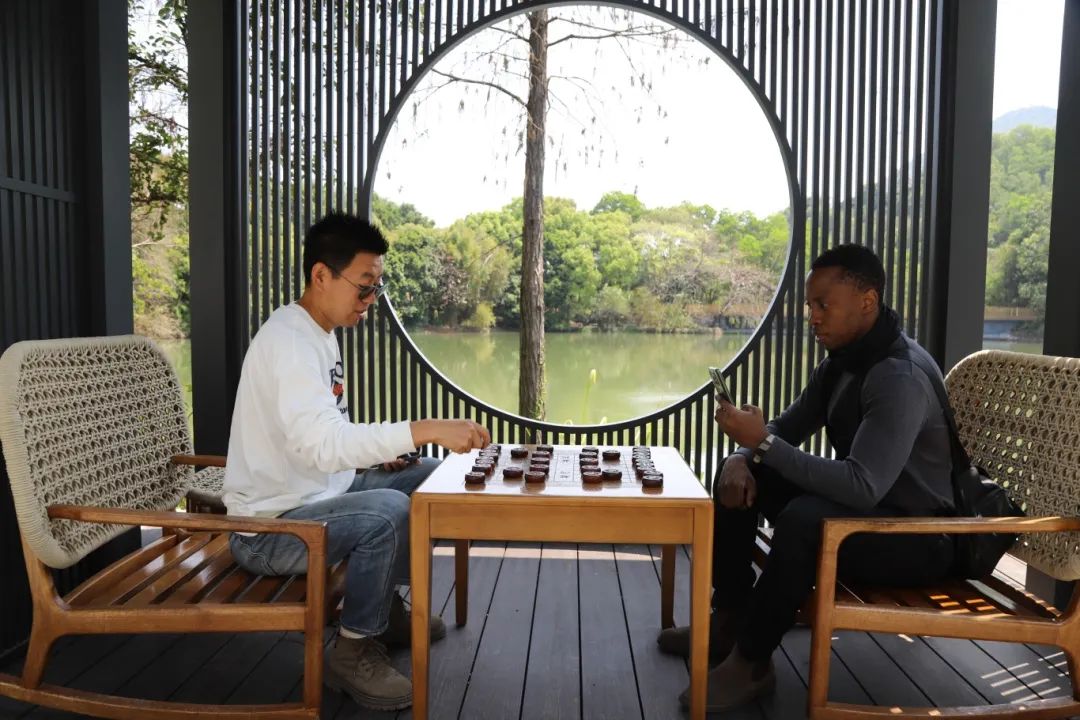 通过工作人员的介绍,他们了解到酒店联合生态环境专家打造了6条生态步道,分别是酒店内部的3条:亲水步道、环湖步道以及竹里步道,另外3条延伸到马峦山郊野公园,分别是两山手作步道、碧岭瀑布群步道和坪盐赏梅步道,将山海堂酒店和马峦山郊野公园的自然生态有机融合,形成全域生态系统。客人可沿生态步道,探访全域博物。