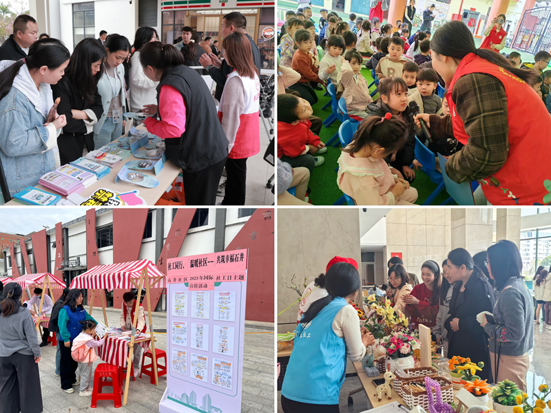 在工业园区,专业社工开展“心理减压工作坊”“劳资纠纷调解模拟课堂”,运用沙盘治疗、焦点解决等专业技术帮助职工构建和谐劳动关系;走进校园的“角色互换职业体验”“反欺凌情景剧场”,通过沉浸式教育让青少年在互动中提升职业理念和法治素养;社区便民服务集市不仅提供法律咨询、家电维修等“家门口”服务,更通过“家庭关系圆桌会”运用家庭系统理论化解矛盾;机关单位的“心理健康筛查”“职场解压沙龙”“非遗文化体验”,助力职场人轻装前行。
