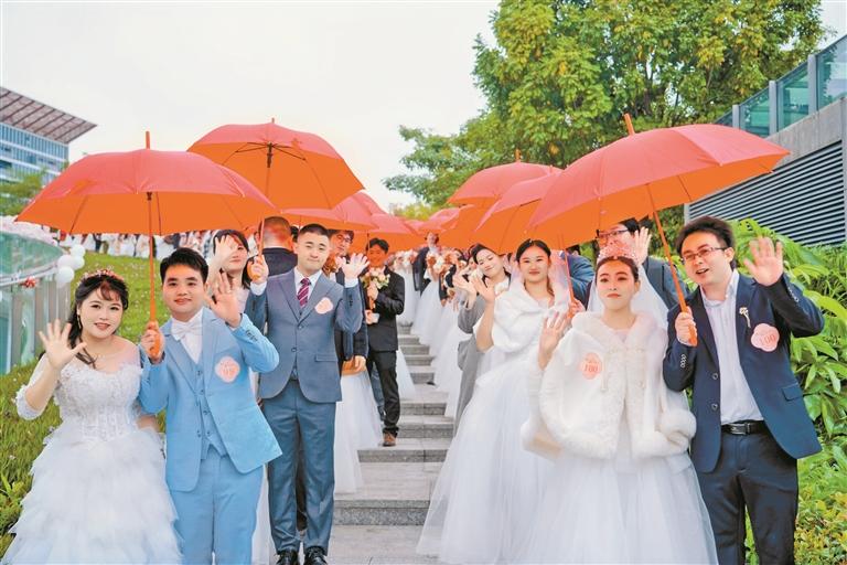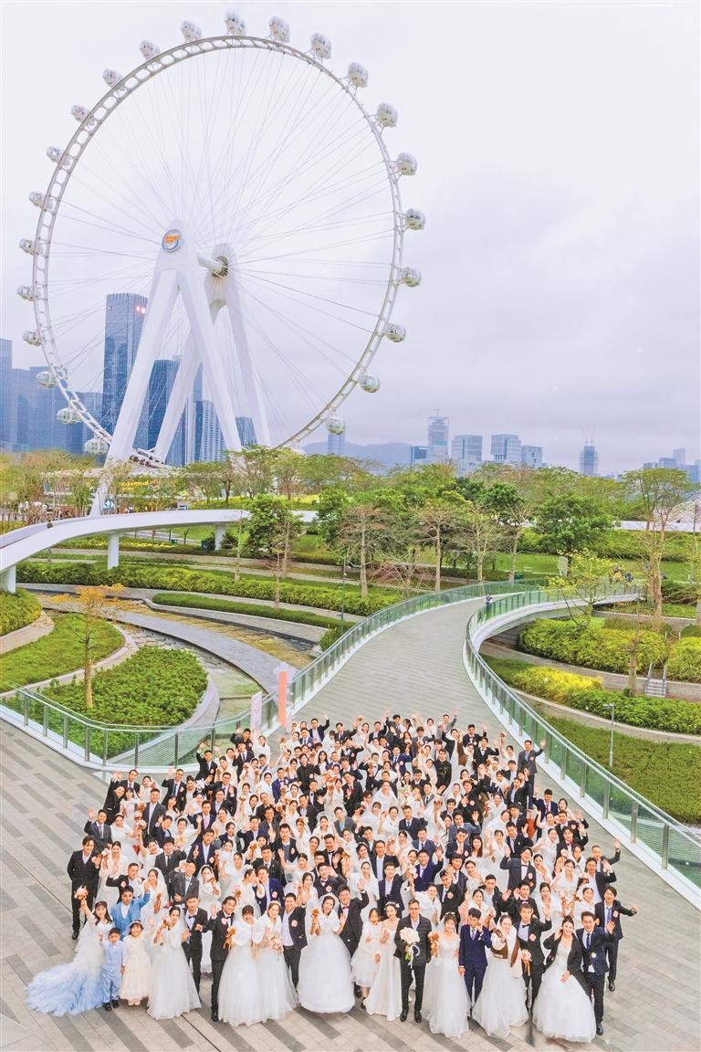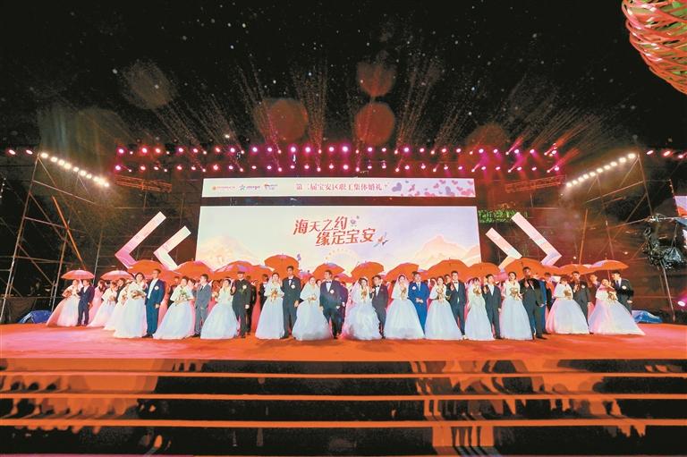 据了解,参加此次集体婚礼的这100对新人中,有产业工人、医生、教师、新就业群体等各行各业的职工……他们在宝安工作、生活,并在这里扎根。这场婚礼,是他们爱情的见证,也是他们对“第二故乡”的深情告白。