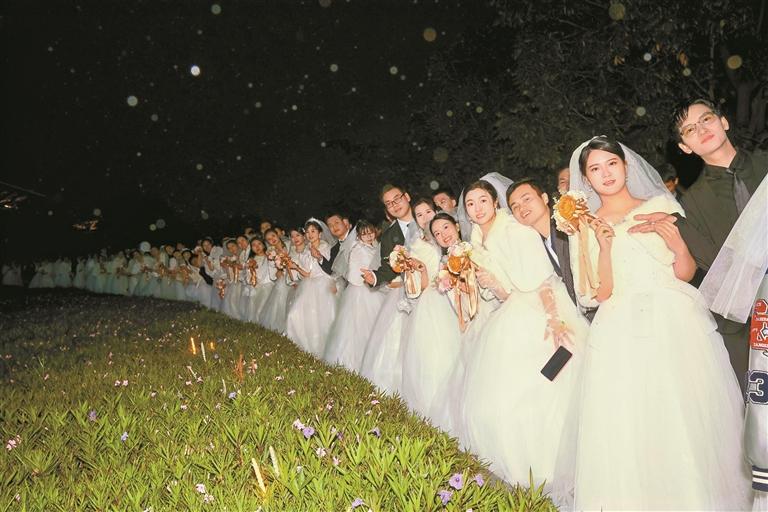 天空飘起零星小雨,为集体婚礼带来“别样的浪漫”。