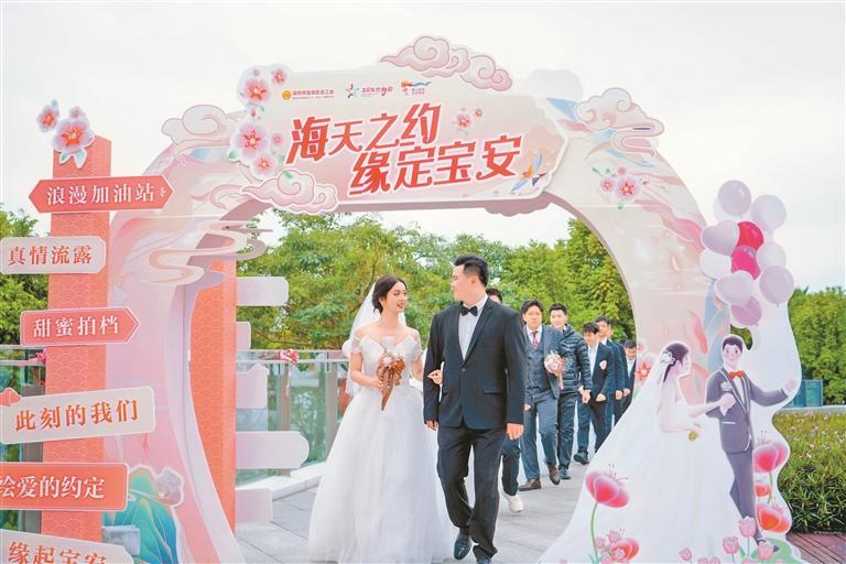 这场以“海天之约·缘定宝安”为主题的婚礼,既是湾区建设者们的爱情见证,更是宝安工会“娘家人”对职工扎根热土的深情回应。就像新人陈洁盛所说,“气温不高,但我们的心一直滚烫”。
