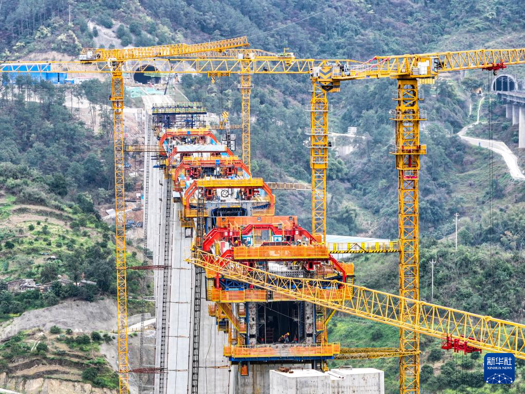 目前,中国铁建大桥局承建的渝万高铁蔡家沟双线特大桥建设稳步推进。