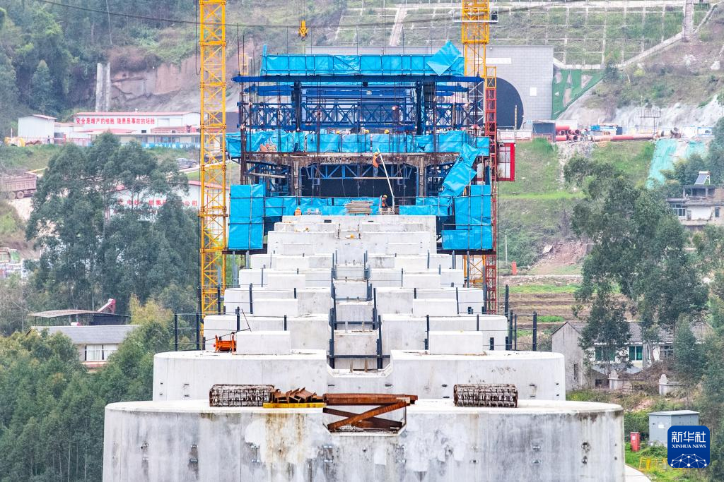 目前,中国铁建大桥局承建的渝万高铁蔡家沟双线特大桥建设稳步推进。