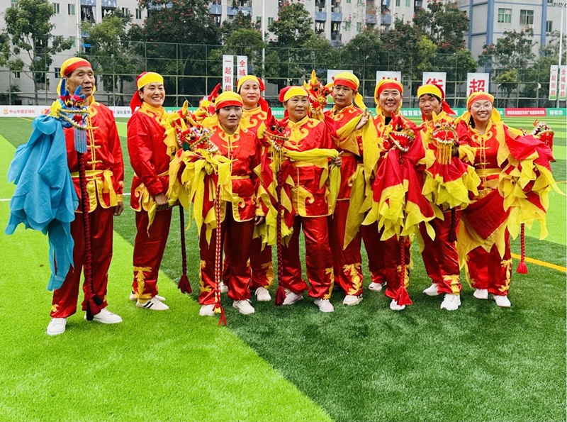 这支平均年龄52岁的小区队伍,由退休的来深长者等自发组成,六年来坚持在聚龙山公园晨练。从自费购置道具到登上湾区赛事舞台,队员感慨:“彩带龙轻便易学,但舞出气势需要日日苦练。”为契合足球赛事氛围,他们特意选用渐变绸带,龙身随动作明暗流转,与球场盛景形成互动。聚龙花园太极队领队表示:“街超不仅要赛足球,更要秀出街坊的才情。”当最后一条彩龙收势成环,现场传来阵阵掌声,年轻球迷举起手机争相记录这“非遗混搭街潮”的瞬间。
