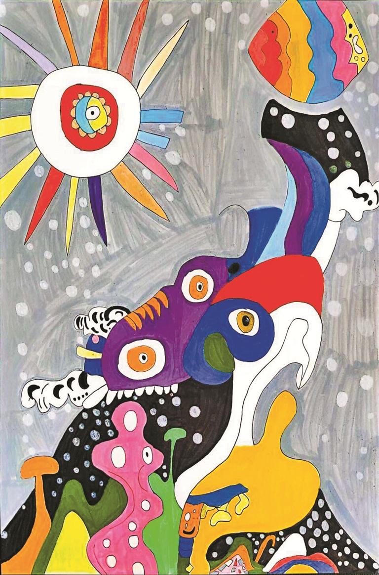 “星星的孩子”部分画作 《密林生机》。 廖子涵 作