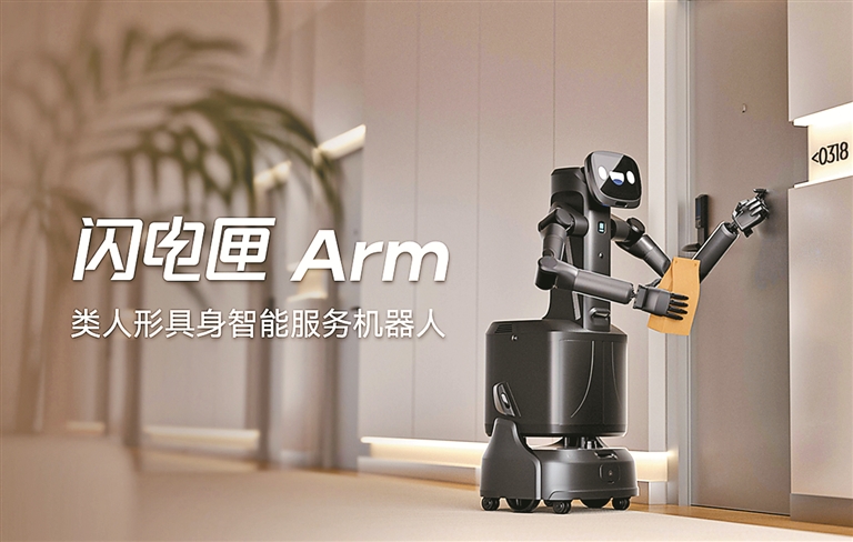 深圳新闻网2025年4月2日讯(深圳商报记者 张国锋)3月31日,普渡机器人发布了全球首款商用场景类人形具身智能服务机器人闪电匣Arm。该款机器人由普渡创新实验室Pudu X-Lab研发,在普渡旗舰专用型商用服务机器人闪电匣的基础上,集成了移动、操作、交互多技术栈,具备泛化操作能力,能够在酒店、楼宇、餐饮、零售、医疗等商业场景中完成多种任务。闪电匣Arm的发布,标志着类人形服务机器人正式开启商业化落地,商用服务机器人正式迈入具身智能的新时代。